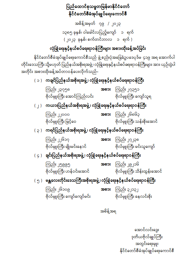 လုံခြုံရေးနှင့်နယ်စပ်ရေးရာဝန်ကြီးများ အစားထိုးခန့်အပ်ခြင်း