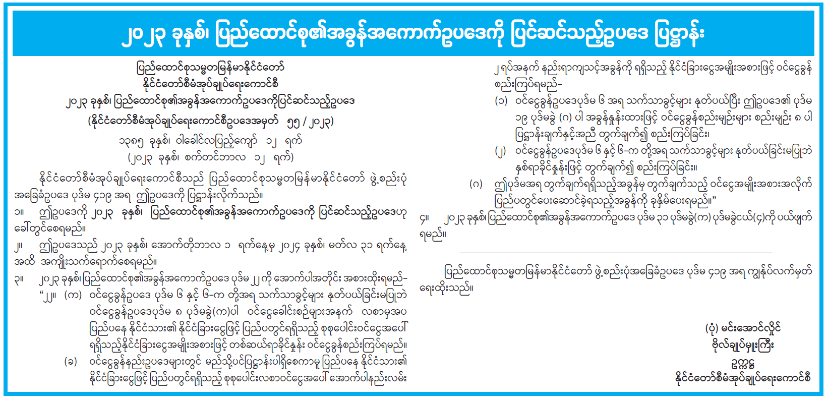 ၂၀၂၃ ခုနှစ်၊ ပြည်ထောင်စု၏အခွန်အကောက်ဥပဒေကို ပြင်ဆင်သည့် ဥပဒေပြဋ္ဌာန်း