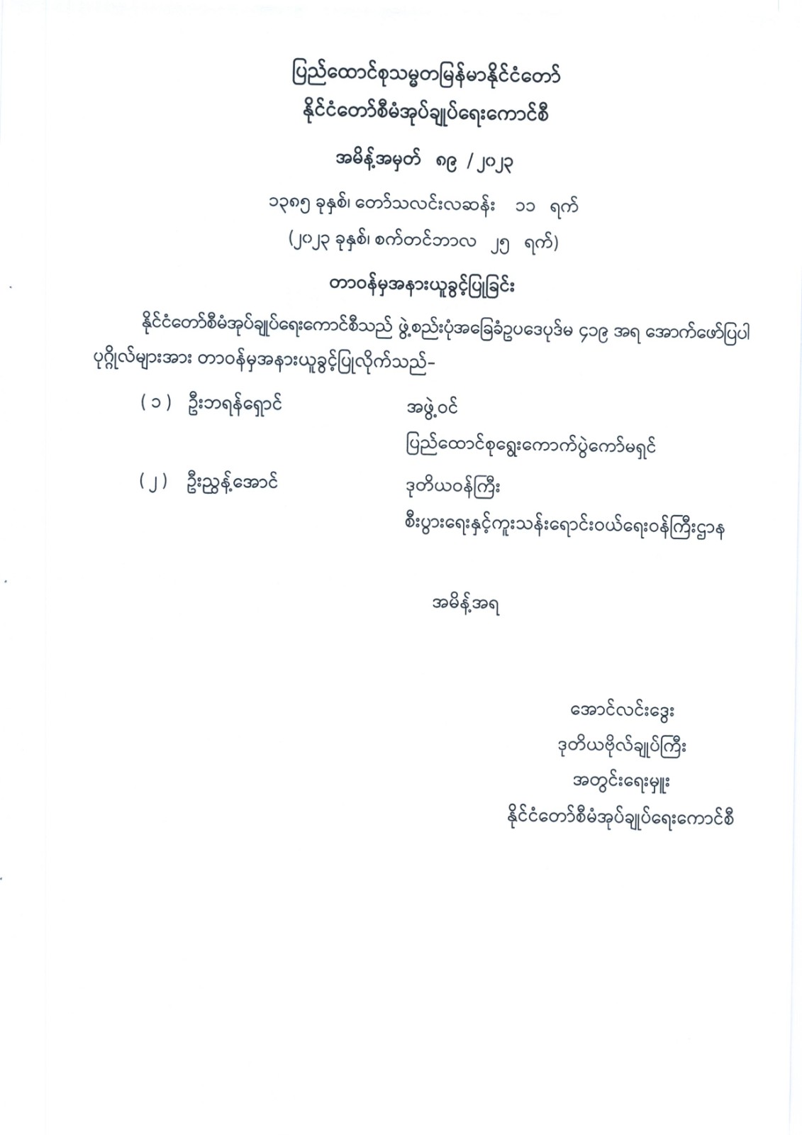ဝန်ကြီးဌာန ကြေညာချက်များ