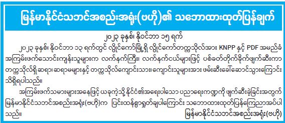 မြန်မာနိုင်ငံသဘင်အစည်းအရုံး(ဗဟို)၏ သဘောထားထုတ်ပြန်ချက်