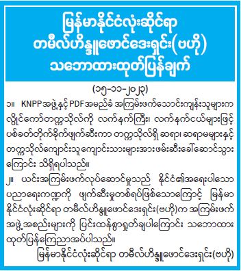 နိုင်ငံတော်အစိုးရ၏ ကြေညာချက်များ