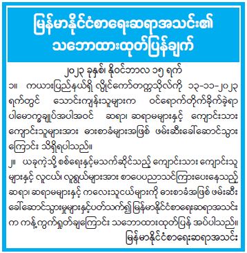 မြန်မာနိုင်ငံစာရေးဆရာအသင်း၏ သဘောထားထုတ်ပြန်ချက်