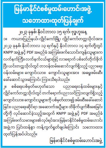 မြန်မာနိုင်ငံစစ်မှုထမ်းဟောင်းအဖွဲ့ သဘောထားထုတ်ပြန်ချက်