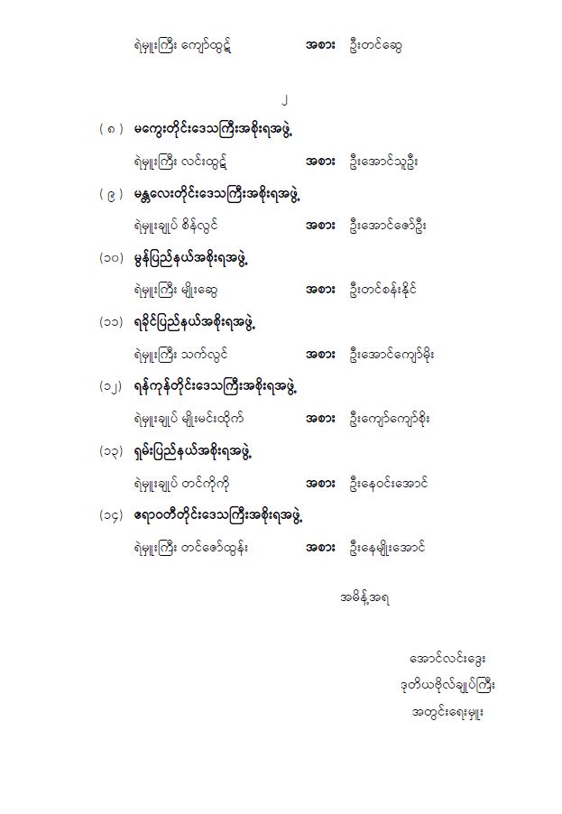 နေပြည်တော်ကောင်စီဝင်နှင့် လမ်းပန်းဆက်သွယ်ရေးဝန်ကြီးများ အစားထိုးခန့်အပ်ခြင်း