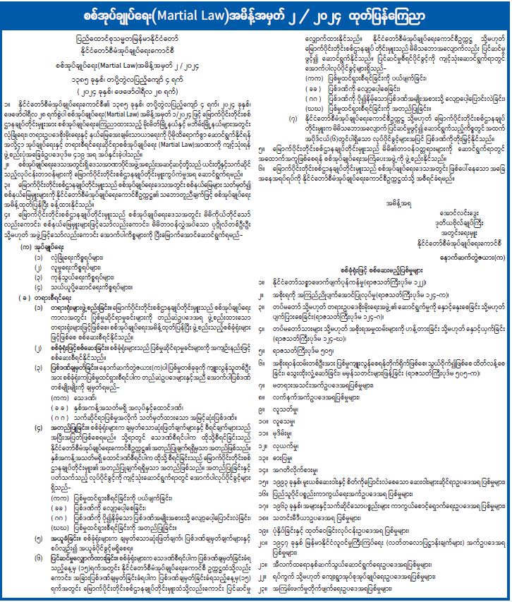 စစ်အုပ်ချုပ်ရေး(Martial Law)အမိန့်အမှတ် ၂ / ၂၀၂၄ ထုတ်ပြန်ကြေညာ