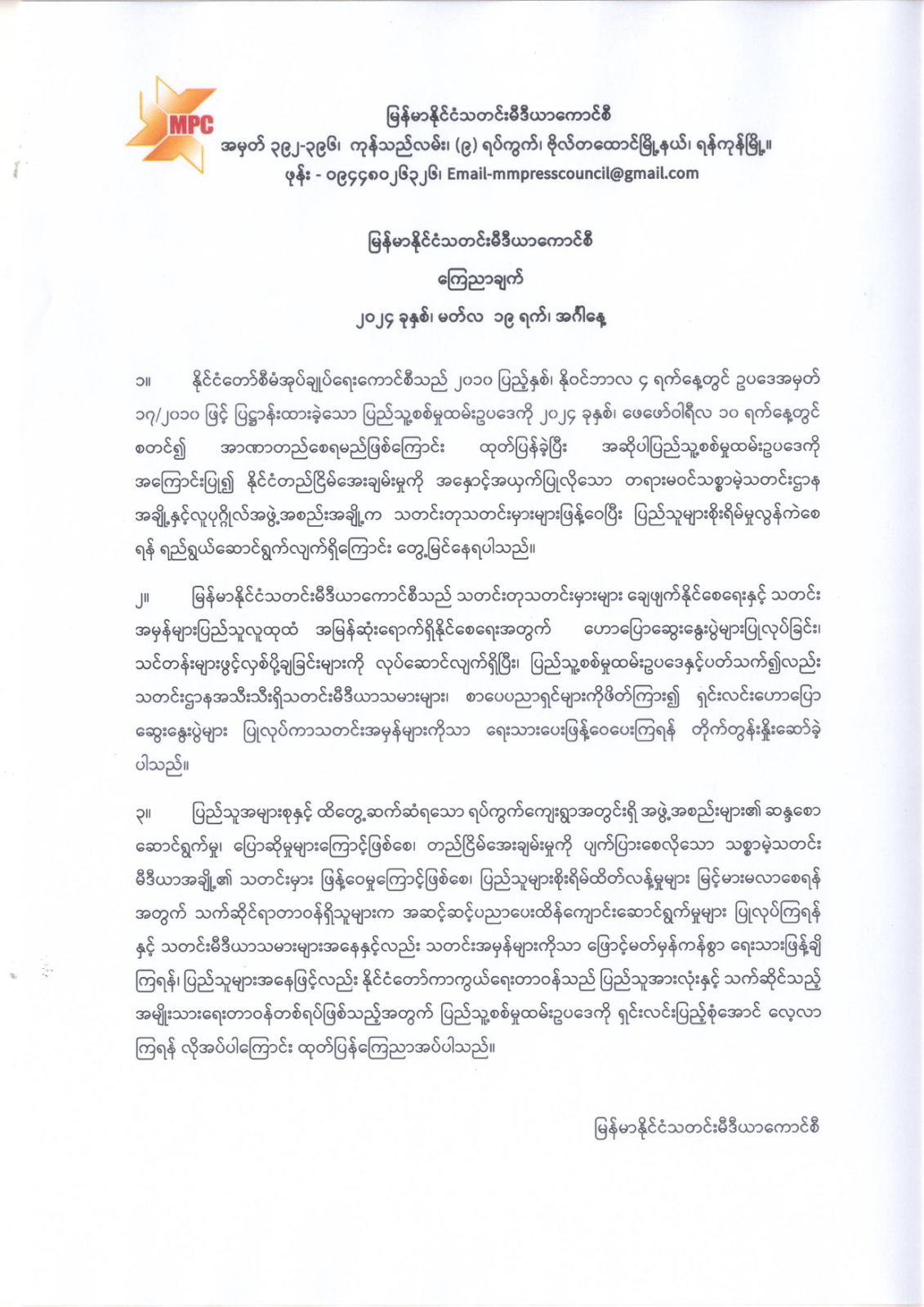 မြန်မာနိုင်ငံသတင်းမီဒီယာကောင်စီကြေညာချက်