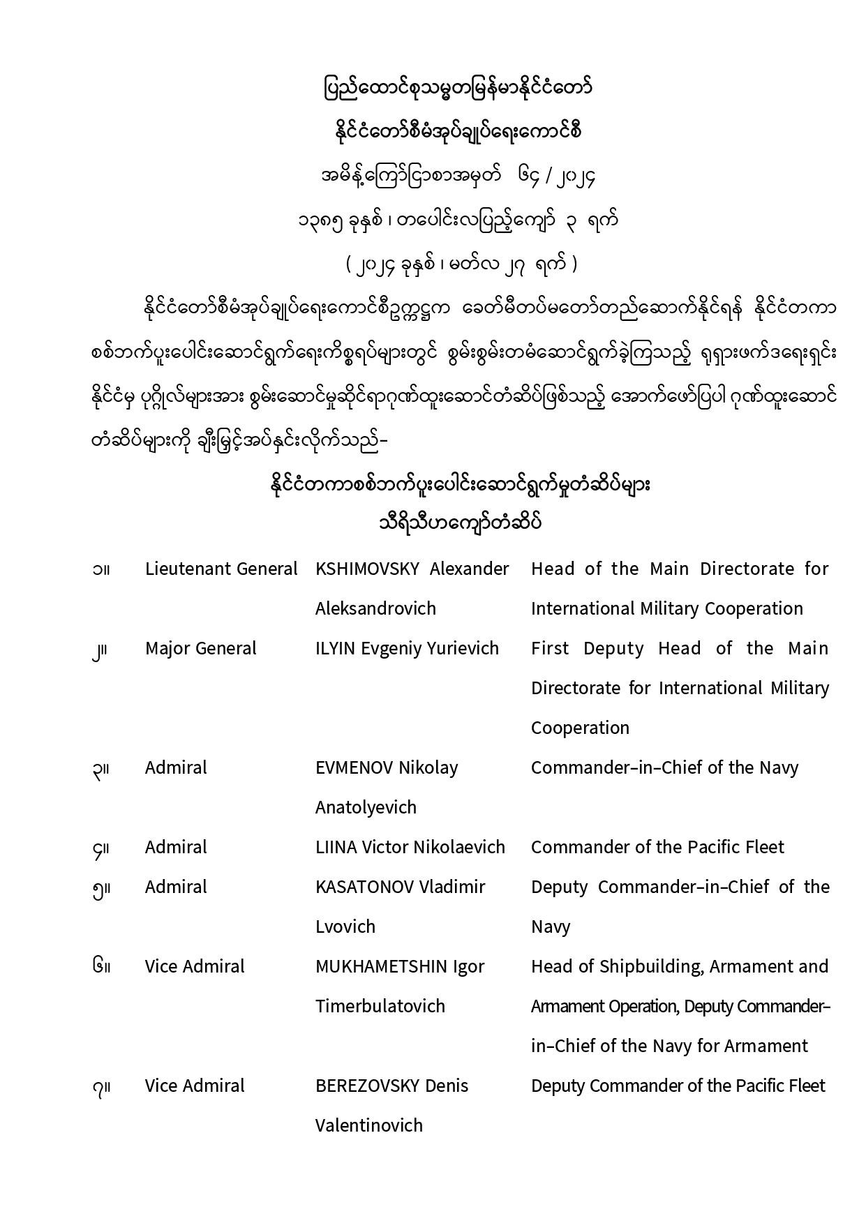 တပ်မတော်ကာကွယ်ရေးဦးစီးချုပ်သတင်း