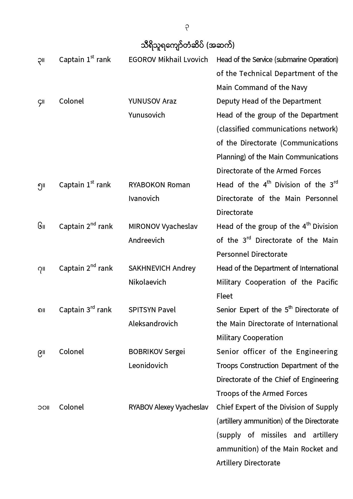 ဝန်ကြီးဌာန ကြေညာချက်များ