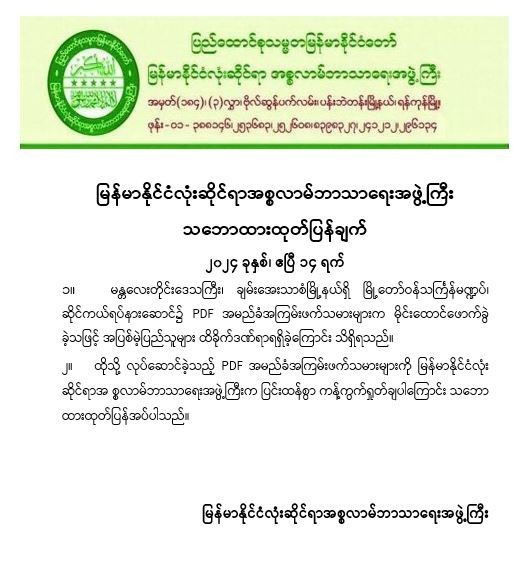 နိုင်ငံတော်အစိုးရ၏ ကြေညာချက်များ