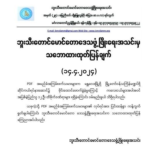ဘူးသီးတောင်မောင်တောဒေသဖွံ့ဖြိုးရေးအသင်းမှ သဘောထားထုတ်ပြန်ချက်