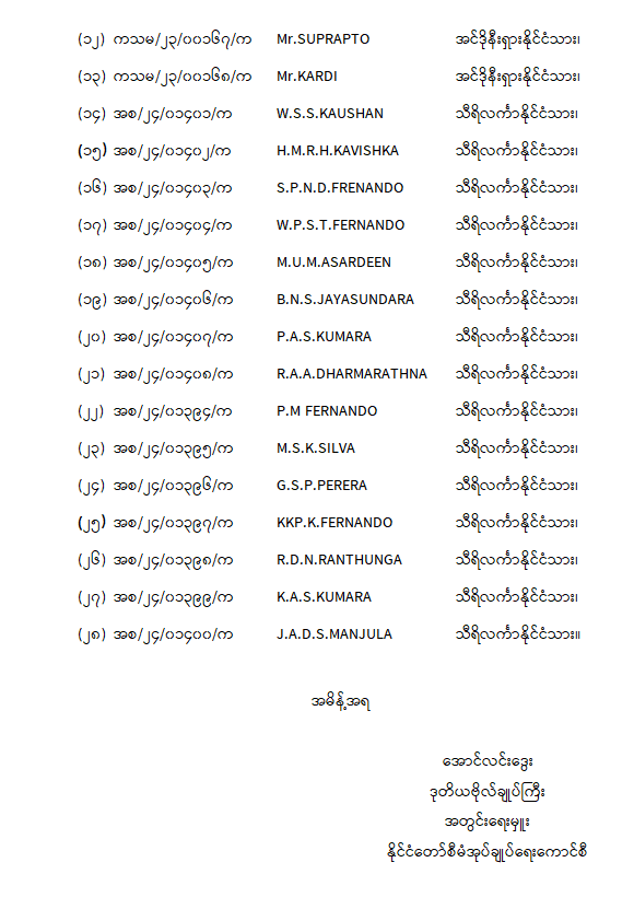ဝန်ကြီးဌာန ကြေညာချက်များ