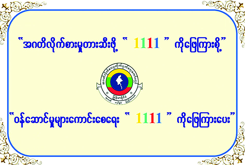 ၄။ သို့ဖြစ်ပါ၍ ပြည်သူလူထုအနေဖြင့် ကော်မရှင်နှင့် ပြည်ထောင်စုဝန်ကြီးဌာန/အဖွဲ့အစည်းများရှိ အဂတိလိုက်စားမှုတားဆီးကာကွယ်ရေးအဖွဲ့များက Short Code “1111” ဖြင့် SMS ပေးပို့မေးမြန်းလိုက်သော မေးခွန်းများကို ပြန်လည်ဖြေကြားပေးခြင်းသည် အဂတိလိုက်စားမှု တားဆီးကာကွယ်ရေးလုပ်ငန်းများတွင် တစ်ဖက်တစ်လမ်းမှ ပါဝင်ဆောင်ရွက်ခြင်းဖြစ်သဖြင့် အများပြည်သူထံမှ တုံ့ပြန်မှုရယူခြင်းအစီအစဉ်ကို အတူတကွ ပူးပေါင်းပါဝင်ဆောင်ရွက်စေလို ပါကြောင်း အသိပေးနှိုးဆော်တင်ပြအပ်ပါသည်။