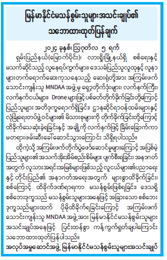 မြန်မာနိုင်ငံမသန်စွမ်းသူများအသင်းချုပ်၏ သဘောထားထုတ်ပြန်ချက်