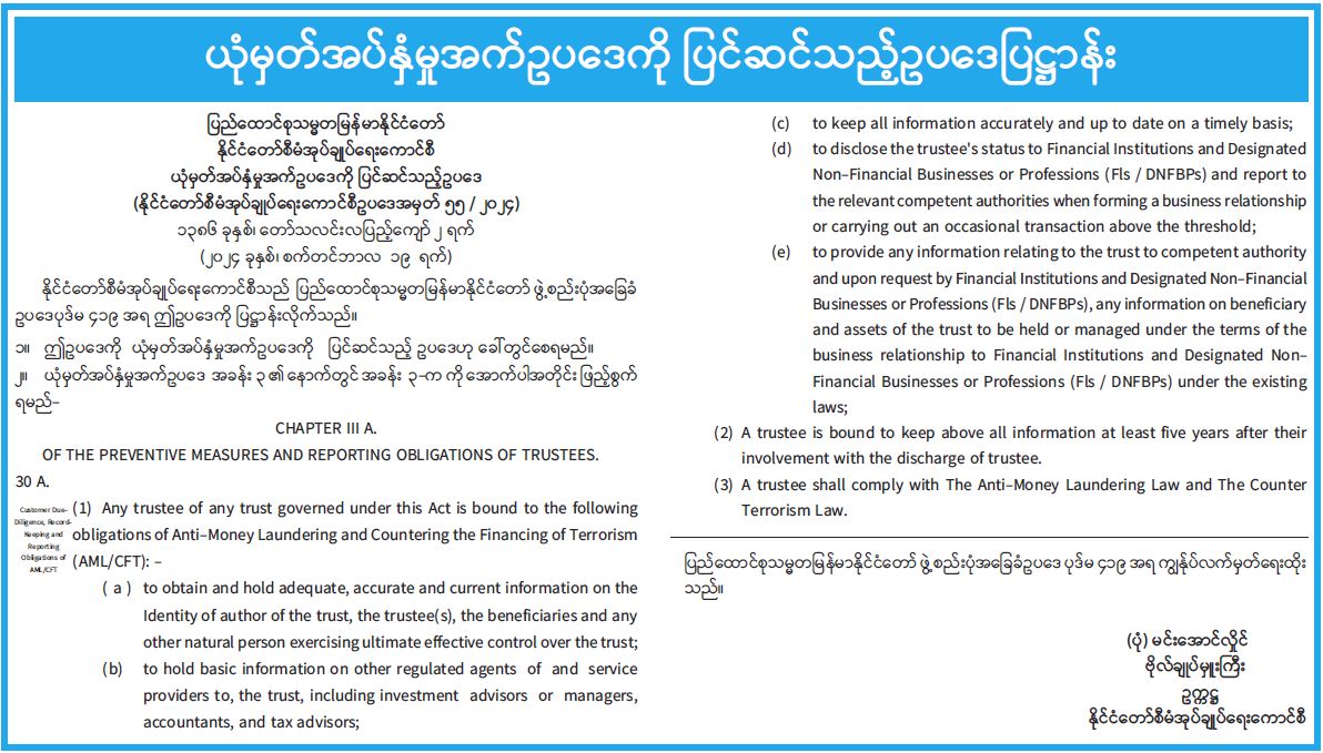 ယုံမှတ်အပ်နှံမှုအက်ဥပဒေကို ပြင်ဆင်သည့်ဥပဒေပြဋ္ဌာန်း