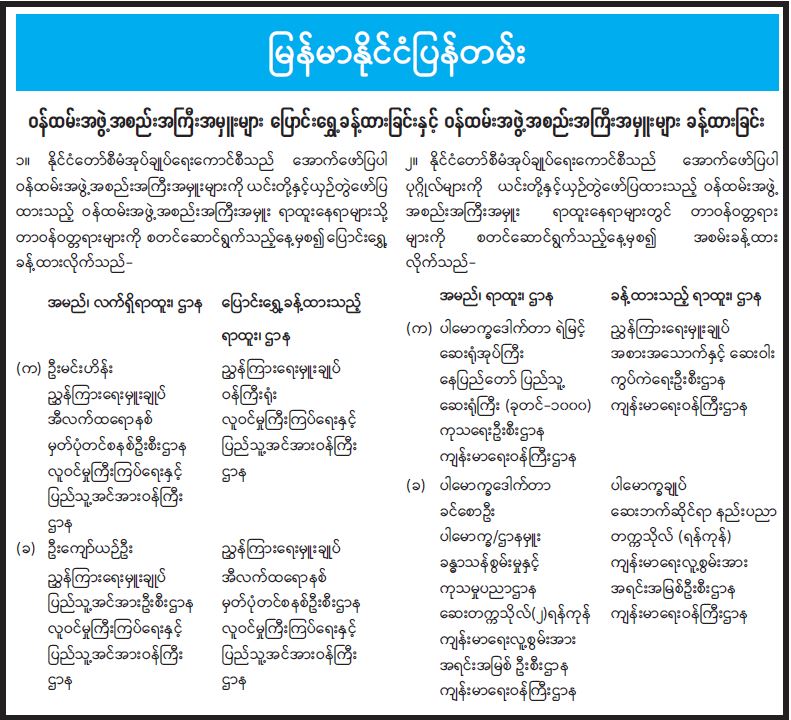 ဝန်ထမ်းအဖွဲ့အစည်းအကြီးအမှူးများ ပြောင်းရွှေ့ခန့်ထားခြင်းနှင့် ဝန်ထမ်းအဖွဲ့အစည်းအကြီးအမှူးများ ခန့်ထားခြင်း 01/24/2025