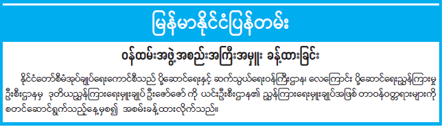 ဦးစီးဌာနနှင့် လုပ်ငန်းများ၏ ကြေညာချက်များ