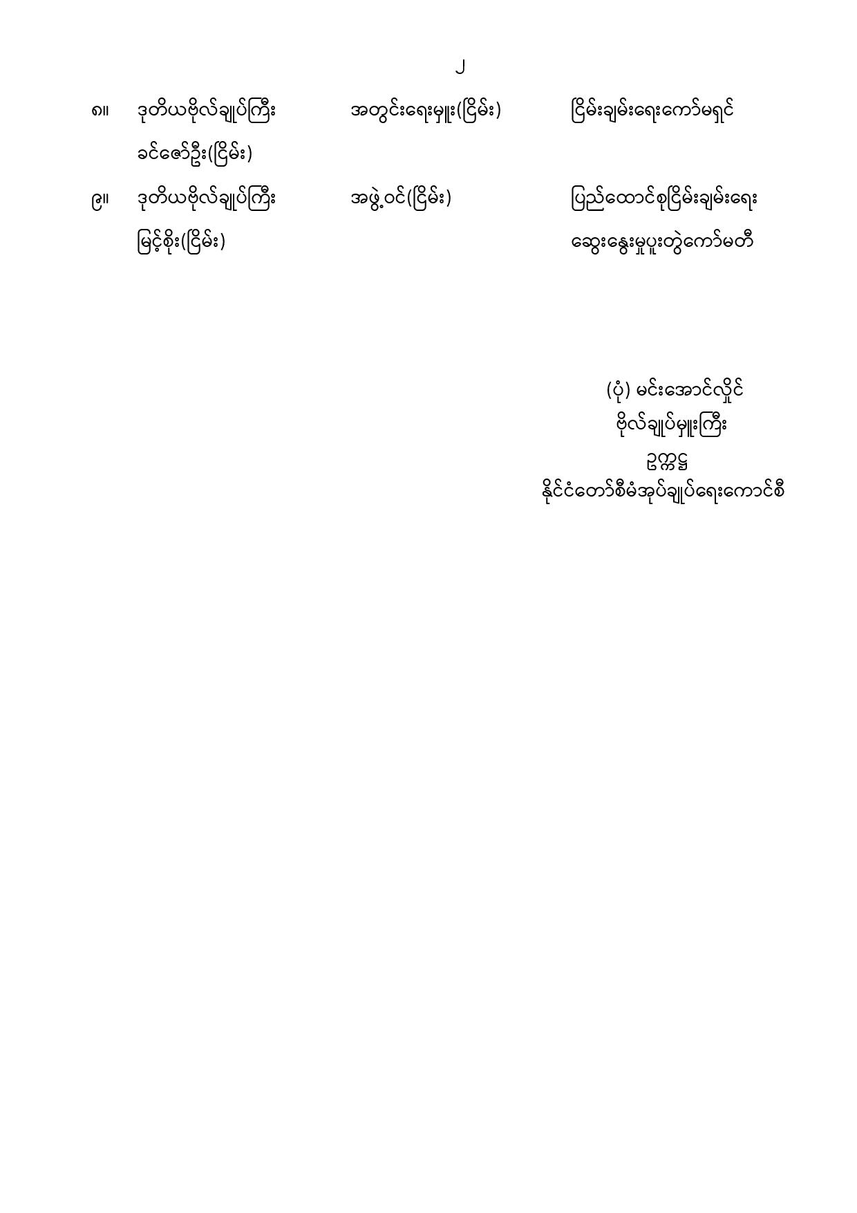 ဝန်ကြီးဌာန ကြေညာချက်များ