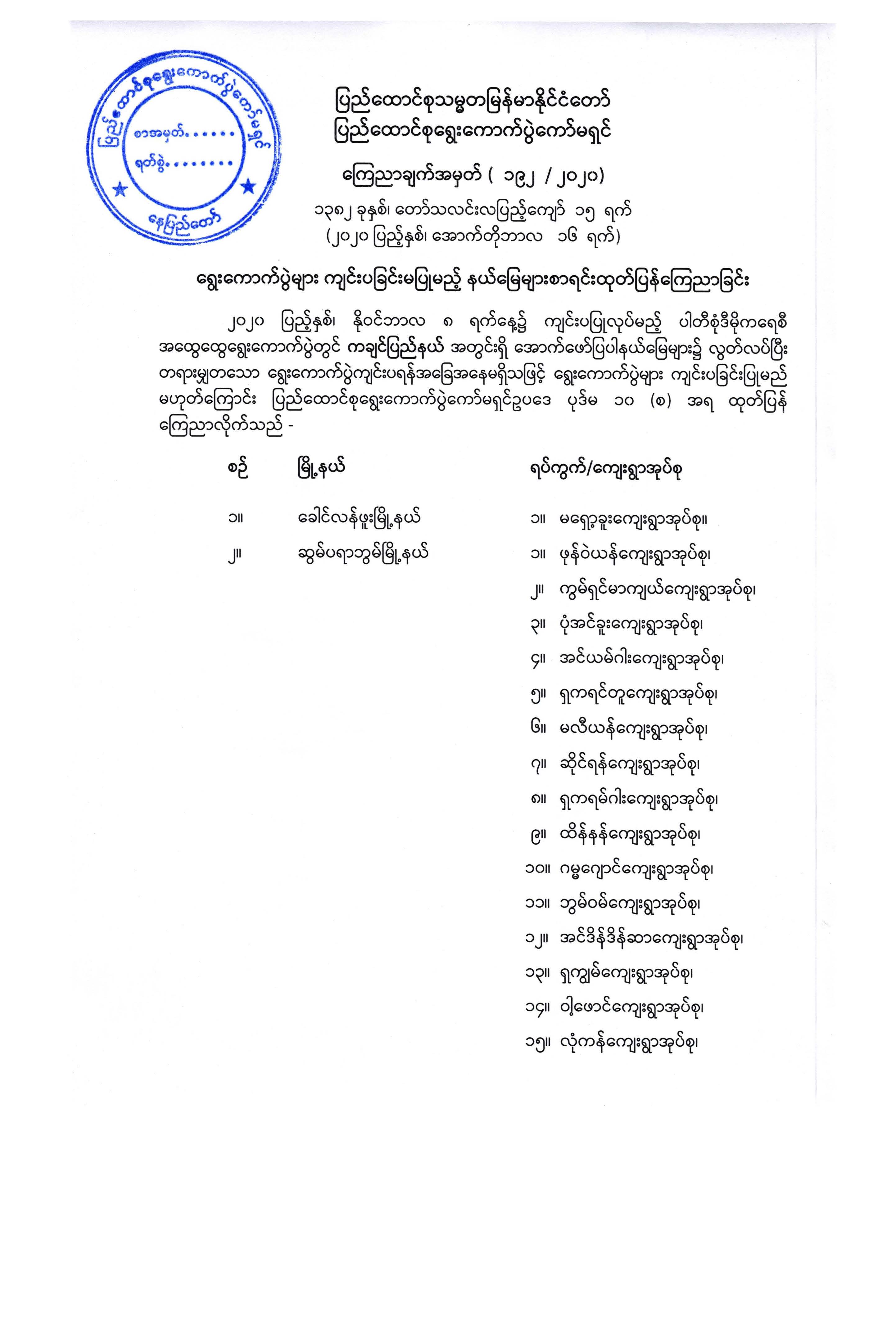ကြေညာချက်အမှတ် ( ၁၉၂ / ၂၀၂၀)