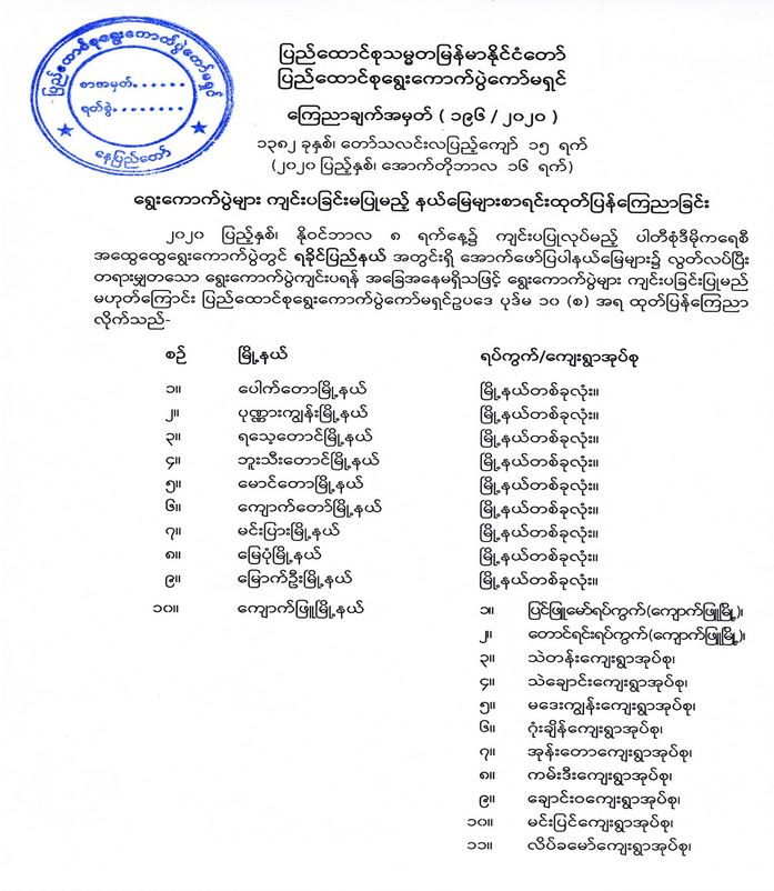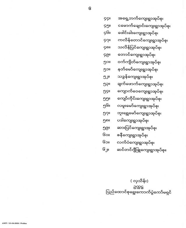 ကြေညာချက်အမှတ် ( ၁၉၆ / ၂၀၂၀)