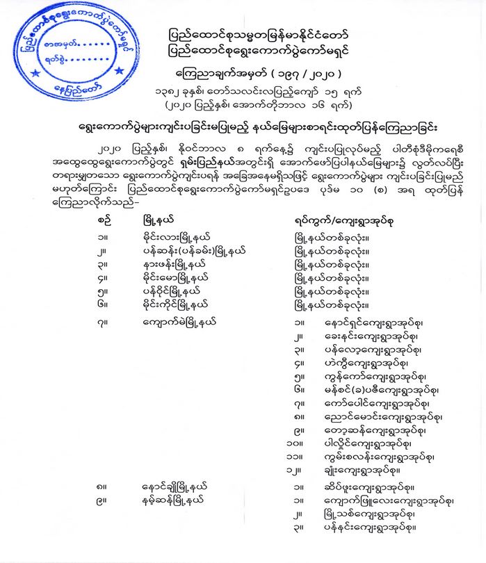 ဝန်ကြီးဌာန ကြေညာချက်များ