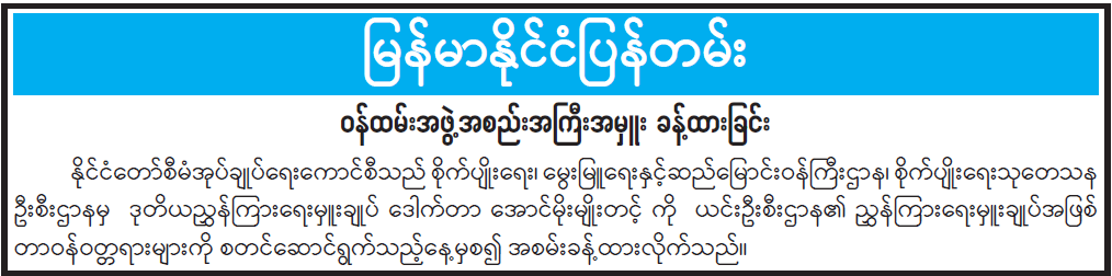 ဦးစီးဌာနနှင့် လုပ်ငန်းများ၏ ကြေညာချက်များ