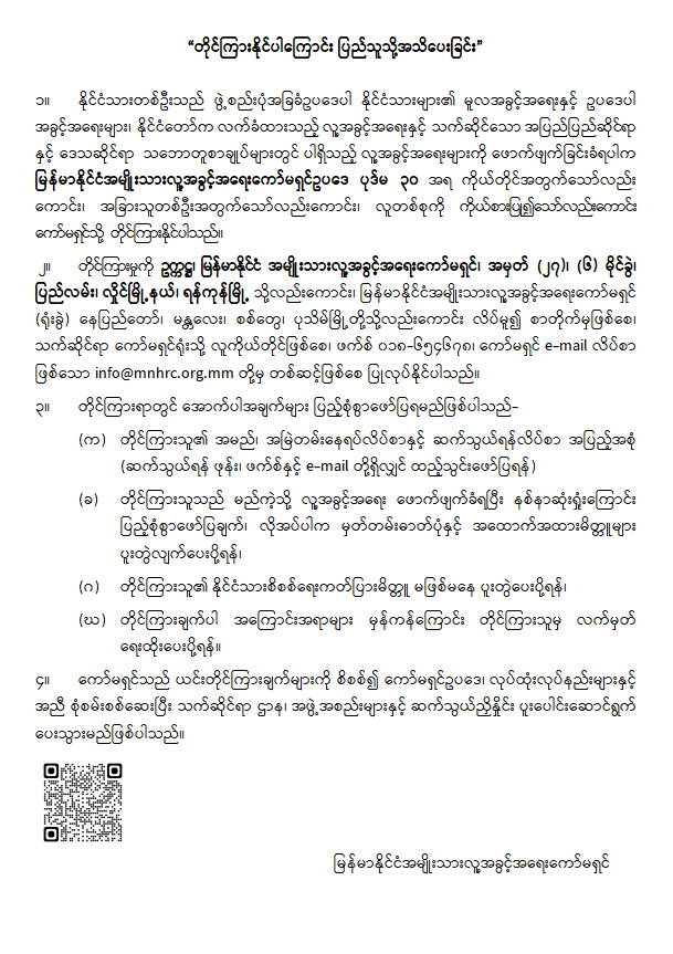 “တိုင်ကြားနိုင်ပါကြောင်း ပြည်သူသို့အသိပေးခြင်း”