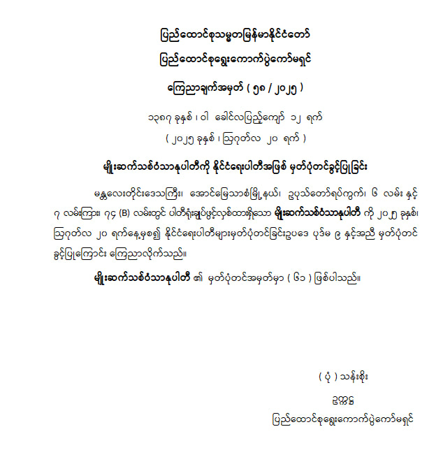 မျိုးဆက်သစ်ဝံသာနုပါတီကို နိုင်ငံရေးပါတီအဖြစ် မှတ်ပုံတင်ခွင့်ပြုခြင်း