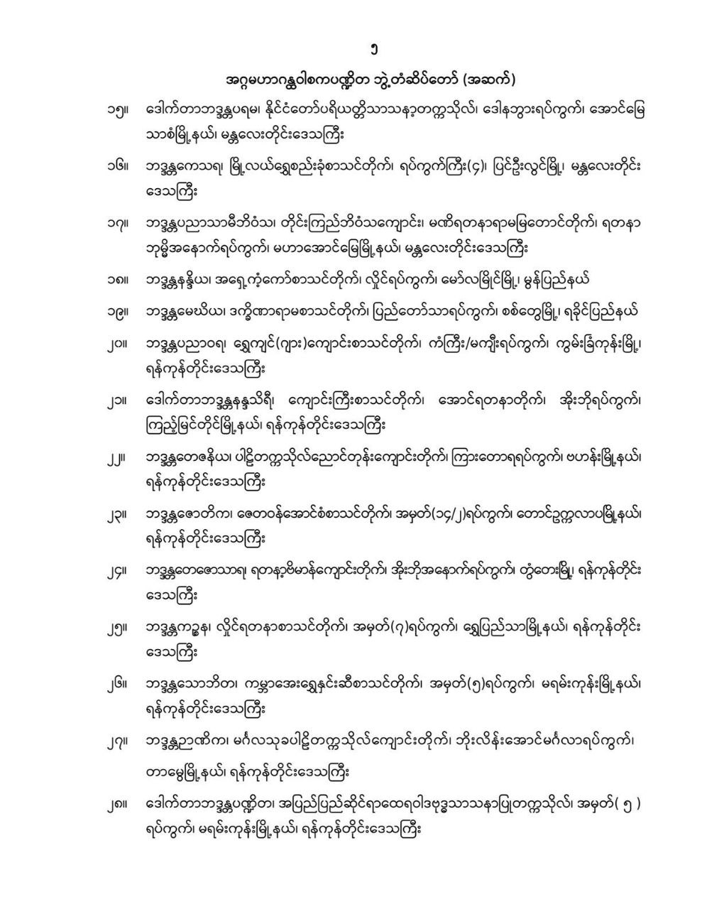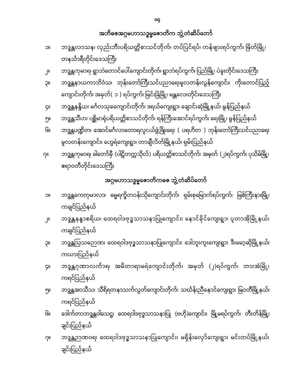 ဝန်ကြီးဌာန ကြေညာချက်များ