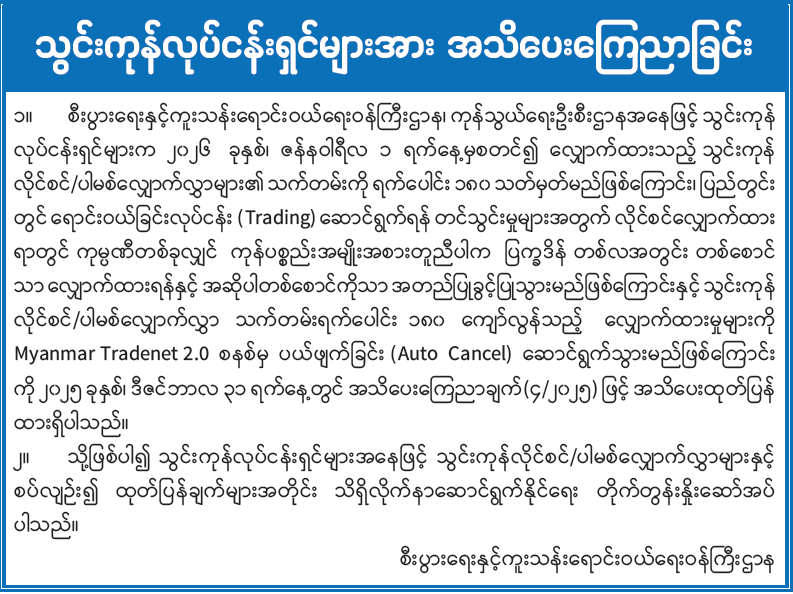 သွင်းကုန်လုပ်ငန်းရှင်များအား အသိပေးကြေညာခြင်း