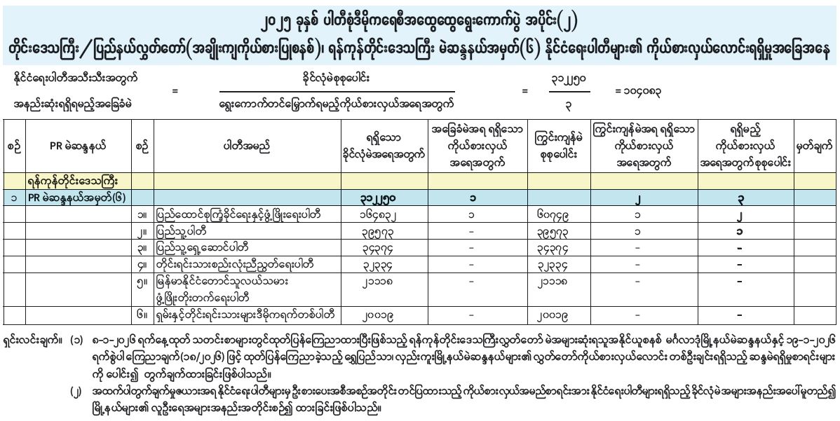 ၂၀၂၅ ခုနှစ် ပါတီစုံဒီမိုကရေစီအထွေထွေရွေးကောက်ပွဲ အပိုင်း (၂) တိုင်းဒေသကြီး/ ပြည်နယ်လွှတ်တော် (အချိုးကျကိုယ်စားပြုစနစ်)၊ ရန်ကုန်တိုင်းဒေသကြီး မဲဆန္ဒနယ်အမှတ် (၆) နိုင်ငံရေးပါတီများ၏ ကိုယ်စားလှယ်လောင်းရရှိမှုအခြေအနေ
