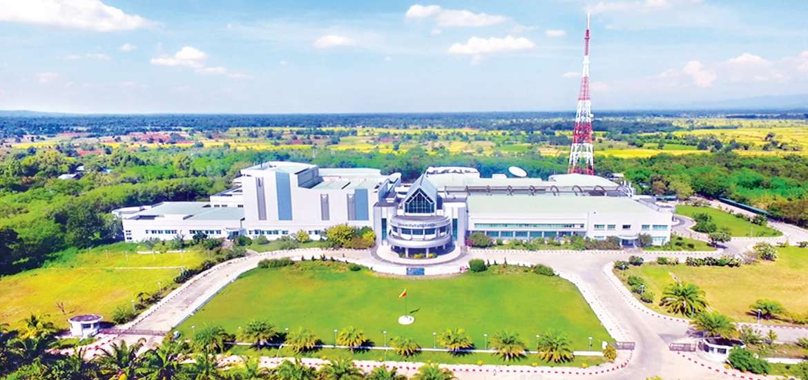 ရန်ကုန်မြို့ ပြည်လမ်းမကြီးပေါ်ရှိ ဟံသာ၀တီအဝိုင်းကြီးနှင့် မျက်စောင်းထိုး ဓားလွယ်ခုတ် ကျကျတွင် သစ်ရိပ်သစ်ပင်တို့ ဝိုင်းပတ်ခြံရံလျက်ရှိနေသော အဆောက်အအုံ သည်ကား မြန်မာ့အသံနှင့် ရုပ်မြင်သံကြား (Myanmar Radio and Television MRTV) အဆောက်အအုံ ဖြစ်ပါ သည်။