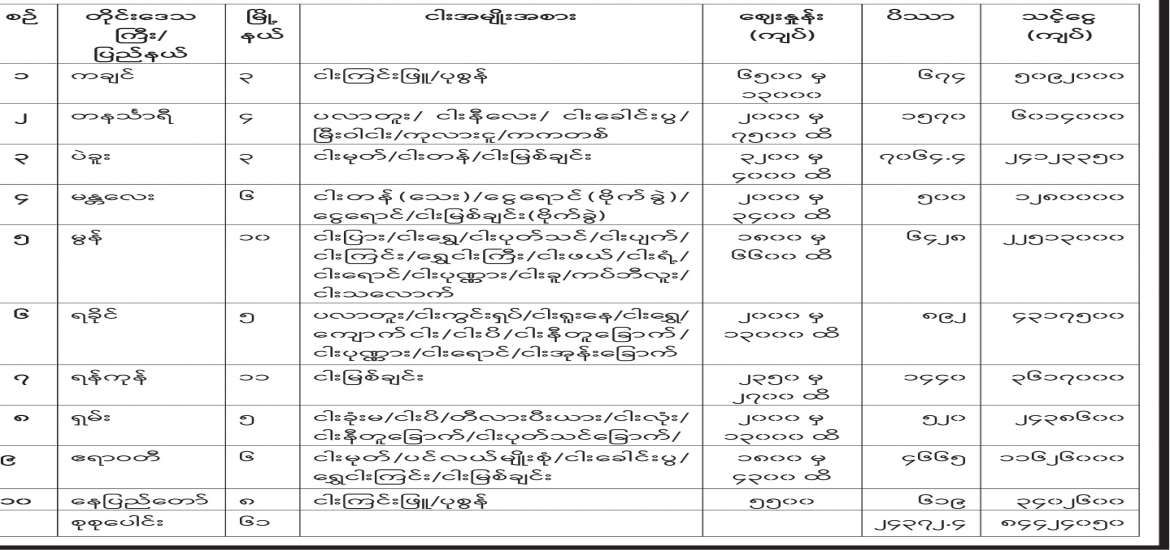 ကျမ်းကိုး။ သမဝါယမဦးစီးဌာနနှင့်  ငါးလုပ်ငန်းဦးစီး   ဌာနမှ စာရင်းအင်းများ