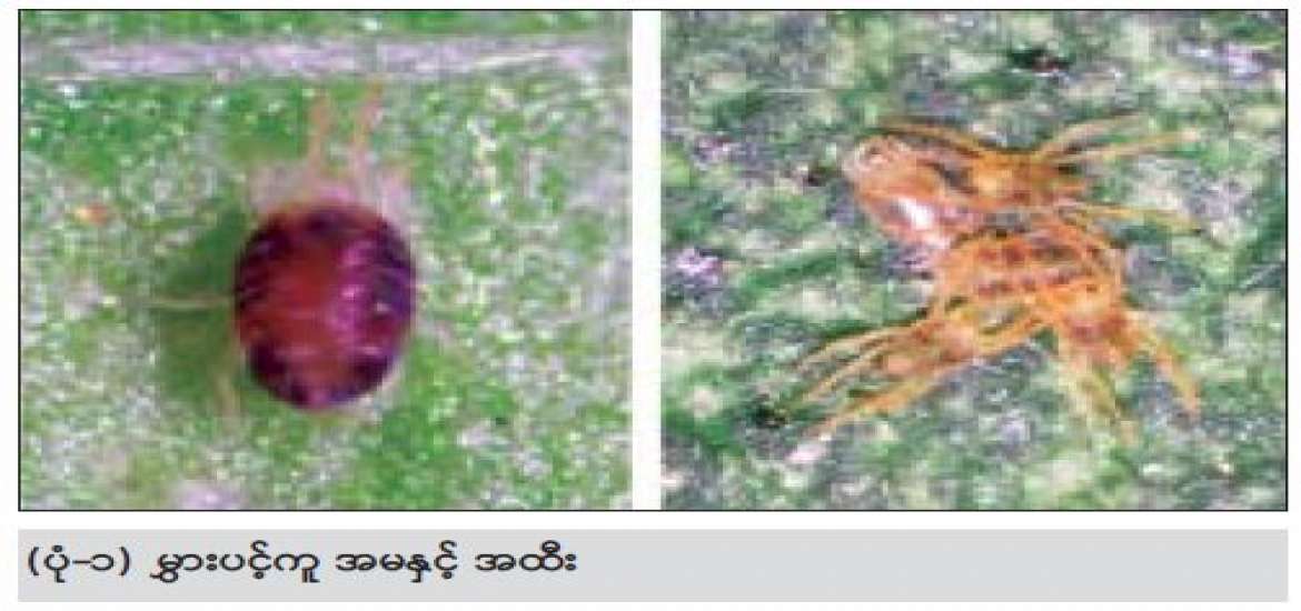 မွှားပင့်ကူကောင်များသည် အရွယ်အစားအားဖြင့် အလွန်သေးငယ်လှသော ဖျက်ပိုးများပင် ဖြစ်သော် လည်း ၎င်းတို့၏ ဖျက်ဆီးမှုနှုန်းမှာ မြင့်မားသည်။ ဖျက်ဆီးသည့်နှုန်း မြင့်မားလာသည်နှင့်အမျှ အရွက်တွင် စိမ်းရောင်ခြယ်ဆဲလ်များ ပျက်စီးမှုကြောင့် အပင်၏ အစာချက်နှုန်းကို ထိခိုက်စေပြီး သီးနှံ အထွက်နှုန်းကို သိသာစွာ လျော့နည်းစေသည်။ သီးနှံမရွေး၊ အချိန်အခါမရွေး၊ ရာသီဥတုမရွေး ကျရောက်တတ်သော ဤပိုးကောင်ငယ်များအား အရွက်များ၏ အပေါ်မျက်နှာပြင်တွင်လည်းကောင်း၊ အောက်ဘက်မျက်နှာပြင်တွင် လည်းကောင်း မျိုးစိတ်အပေါ် မူတည်၍ အမျိုးမျိုးတွေ့ရတတ်သည်(ပုံ-၂)။ ဆိုးရွားစွာကျရောက်သည့် အခြေအနေတွင် အရွက်မျက်နှာပြင် နှစ်ဖက်လုံး၌ ကျရောက်သည်ကို တွေ့ရသည်။