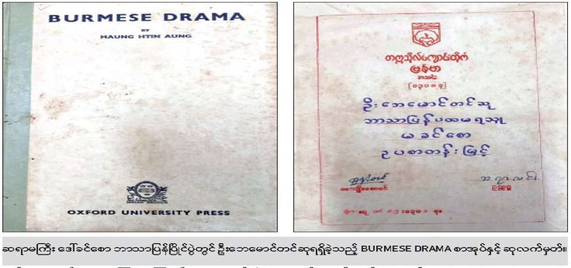ဆရာမကြီး ဒေါ်ခင်စောက မဟာဝိဇ္ဇာကို ရေးဖြေနဲ့ ဘွဲ့ယူသူဖြစ်ပါတယ်။ လူတော်တော်များများ မသိတဲ့ အချက်က ဆရာမကြီး ဥပစာတန်းကျောင်းသူတုန်းက ဘာသာပြန်ပြိုင်ပွဲမှာ ဦးဘေမောင်တင်ဆု ရခဲ့တာပါ။ ဘာသာပြန်ပထမဆုပါ။ ဆုအဖြစ်ရတဲ့ စာအုပ်က ဒေါက်တာထင်အောင်ပြုစုတဲ့ Burmese Drama စာအုပ်ပါ။ သူ့အကြိုက်စာအုပ်ဖြစ်လို့ အမြတ်တနိုး နှစ်ရှည်လများ သိမ်းထားရာက ၂၀၀၄ ခုနှစ်မှာ ကျွန်မဆီကို လူကြုံ ဒေါက်တာထွန်းတင့်နဲ့ မန္တလေးကနေ လက်ဆောင်ပို့ပေး လိုက်တာပါ။ စာအုပ်ဖွင့်ဖွင့်ချင်း စာမျက်နှာမှာပဲ ---