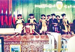 မြန်မာပြည်မှာ ၁၈၇၈-၇၉ စာသင်နှစ်မှာ ရန်ကုန်အစိုးရဟိုက်စကူးတွင် ရန်ကုန်ကောလိပ်ကို စတင်တည်ထောင်တယ်။ ရန်ကုန်ကောလိပ်နဲ့အပြိုင် ဂျပ်ဆင်ကောလိပ်ကို ကူရှင်ကျောင်းမှာ ၁၈၉၄ ခုနှစ် မေလမှာ စတင်ဖွင့်လှစ်တယ်။ ရန်ကုန်ကောလိပ်ရော ဂျပ်ဆင်ကောလိပ်ပါ ကာလကတ္တားတက္ကသိုလ်လက်အောက်ခံဖြစ်တယ်။ ကာလကတ္တားတက္ကသိုလ်က ပေးတဲ့ဘွဲ့ယူရတယ်။ အဲဒီအချိန်တုန်းက မြန်မာပြည်မှာ ဘွဲ့နှင်းသဘင်ခန်းမရယ်လို့ မရှိသေးဘူး။