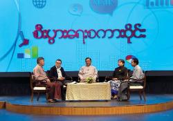 စီးပွားရေးဝန်းကျင်ကောင်းကို ဖန်တီးခြင်းစကားဝိုင်းကို မြန်မာ့အသံနှင့် ရုပ်မြင်သံကြားမှ ရိုက်ကူးထုတ်လွှင့်ခဲ့သည်။ အဆိုပါ စကားဝိုင်း ဆွေးနွေးပွဲတွင် မြန်မာ့အသံနှင့် ရုပ်မြင်သံကြားမှ ဦးသူရိန်လွင်က အစီအစဉ်မှူးအဖြစ်ဆောင်ရွက်ပြီး စီးပွားရေးနှင့် ကူးသန်းရောင်းဝယ်ရေးဝန်ကြီးဌာန အမြဲတမ်းအတွင်းဝန်၊ မြန်မာကုန်သွယ်မှုမြှင့်တင်ရေးအဖွဲ့ ညွှန်ကြားရေးမှူးချုပ် ဦးအောင်စိုး (စီးပွားရေးလုပ်ငန်းလုပ်ကိုင်ရလွယ်ကူမှုအထောက်အကူပြုအဖွဲ့၊ အတွင်းရေးမှူး)၊ စိုက်ပျိုးရေး၊ မွေးမြူရေးနှင့် ဆည်မြောင်း ဝန်ကြီးဌာန လယ်ယာမြေ စီမံခန့်ခွဲရေးနှင့် စာရင်းအင်းဦးစီးဌာန ညွှန်ကြားရေးမှူး ဦးကျော်ငြိမ်းအောင် (ပိုင်ဆိုင်မှုမှတ်ပုံတင်ခြင်း