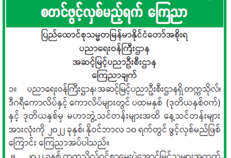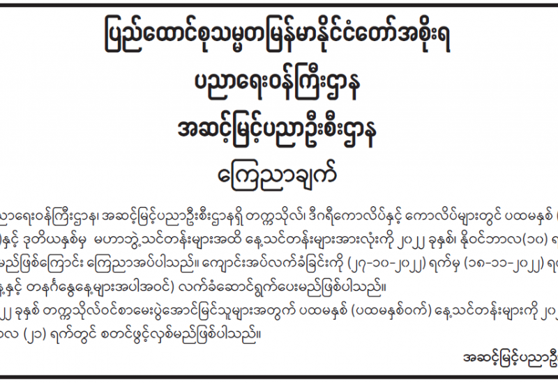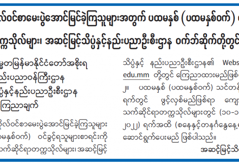 ၂၀၂၂ ခုနှစ် တက္ကသိုလ်ဝင်စာမေးပွဲ အောင်မြင်သူများအတွက် ကြေညာချက်