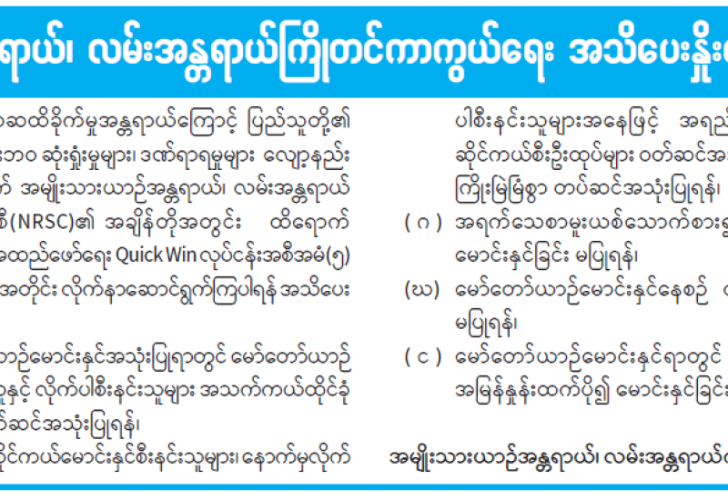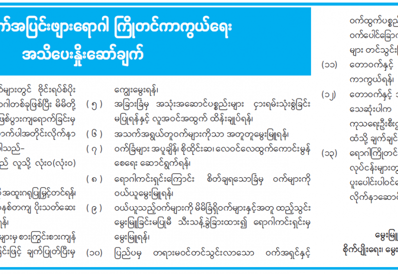 “ကုန်သွယ်မှုဆောင်ရွက်ရာတွင် ဌာနဆိုင်ရာအဖွဲ့အစည်းများမှ ငွေကြေးတောင်းခံမှု သတင်းများ”နှင့်ပတ်သက်၍ အသိပေးကြေညာချက်
