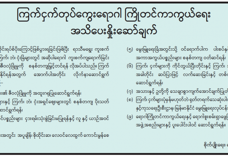 ကြက်ငှက်တုပ်ကွေးရောဂါ ကြိုတင်ကာကွယ်ရေး အသိပေးနှိုးဆော်ချက်