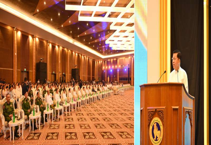 မြန်မာ့စားသောက်ကုန်လုပ်ငန်းဖွံ့ဖြိုးတိုးတက်ရေးဖိုရမ် (၂၀၂၅) ဖွင့်ပွဲအခမ်းအနားကို ယနေ့နံနက်ပိုင်းတွင် နေပြည်တော်ရှိ မြန်မာအပြည်ပြည်ဆိုင်ရာကွန်ဗင်းရှင်းဗဟိုဌာန ၂ ၌ ကျင်းပရာ နိုင်ငံတော်စီမံအုပ်ချုပ်ရေးကောင်စီဥက္ကဋ္ဌ နိုင်ငံတော်ဝန်ကြီးချုပ် ဗိုလ်ချုပ်မှူးကြီး မင်းအောင်လှိုင် တက်ရောက်အမှာစကားပြောကြားသည်။