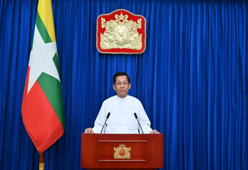 ပြည်ထောင်စုသမ္မတမြန်မာနိုင်ငံတော် ကမ်းခြေစောင့်တပ်ဖွဲ့ကွပ်ကဲမှုဌာနချုပ် တည်ထောင်ခြင်း(၃)နှစ်ပြည့် နှစ်ပတ်လည်နေ့အထိမ်းအမှတ်နှင့် ရေကြောင်းဆိုင်ရာအကျိုးစီးပွားများနှင့် မြန်မာ့ပင်လယ်ကမ်းရိုးတန်းလုံခြုံရေးအား ကာကွယ်စောင့်ရှောက်ရန်အတွက် ၄၈ မီတာ အမြန်သွားကင်းလှည့်ရေယာဉ်(၄)စီး တပ်တော်ဝင်ခြင်းအခမ်းအနားကို ယနေ့မွန်းလွဲပိုင်းတွင် အမှတ်(၃)ရေတပ်ဆိပ်ခံတံတား(သီလဝါ)၌ ကျင်းပပြုလုပ်ရာ နိုင်ငံတော်စီမံအုပ်ချုပ်ရေးကောင်စီဥက္ကဋ္ဌ တပ်မတော်ကာကွယ်ရေးဦးစီးချုပ် ဗိုလ်ချုပ်မှူးကြီးမင်းအောင်လှိုင် တက်ရောက်ဂုဏ်ပြုအမှာစကား ပြောကြားသည်။