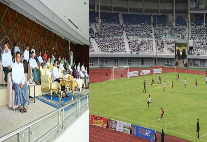 ၂၀၂၄ ခုနှစ်၊ ဝန်ကြီးဌာနပေါင်းစုံ တက္ကသိုလ်များဘောလုံးပြိုင်ပွဲ ဗိုလ်လုပွဲနှင့် ဆုချီးမြှင့်ခြင်းအခမ်းအနားကို ယနေ့မွန်းလွဲပိုင်းတွင် နေပြည်တော်ရှိ ဝဏ္ဏသိဒ္ဓိအားကစားကွင်း၌ ကျင်းပပြုလုပ်ရာ နိုင်ငံတော်စီမံအုပ်ချုပ်ရေးကောင်စီဥက္ကဋ္ဌ နိုင်ငံတော်ဝန်ကြီးချုပ် ဗိုလ်ချုပ်မှူးကြီး မင်းအောင်လှိုင် တက်ရောက်ကြည့်ရှုအားပေးပြီး ဆုများ ပေးအပ်ချီးမြှင့်သည်။