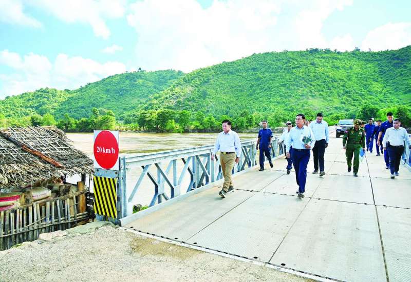 နိုင်ငံတော်စီမံအုပ်ချုပ်ရေးကောင်စီဥက္ကဋ္ဌ နိုင်ငံတော်ဝန်ကြီးချုပ် ဗိုလ်ချုပ်မှူးကြီး မင်းအောင်လှိုင်သည် ယနေ့နံနက်ပိုင်းတွင် ကောင်စီတွဲဖက်အတွင်းရေးမှူး ဗိုလ်ချုပ်ကြီး ရဲဝင်းဦး၊ ပြည်ထောင်စုဝန်ကြီးများဖြစ်ကြသည့် ဦးမင်းနောင်၊ ဦးမျိုးသန့်၊ နေပြည်တော်ကောင်စီဥက္ကဋ္ဌ ဦးသန်းထွန်းဦး၊ ကာကွယ်ရေးဦးစီးချုပ်ရုံးမှ အဆင့်မြင့်တပ်မတော်အရာရှိကြီးများ၊ နေပြည်တော်တိုင်းစစ်ဌာနချုပ်တိုင်းမှူးနှင့် တာဝန်ရှိသူများလိုက်ပါ၍ နေပြည်တော်ကောင်စီနယ်မြေအတွင်း မိုးအဆက်မပြတ်ရွာသွန်းမှုကြောင့် ပျက်စီးမှုများဖြစ်ပေါ်ခဲ့သည့် လမ်းတံတားများအား ပြန်လည်ပြုပြင်ဆောင်ရွက်နေမှုနှင့် ရေကြီးရေလျှံမှု ဖြစ်ပေါ်ခဲ့မှုအခြေအနေများကို လိုက်လံကြည့်ရှုစစ်ဆေးသည်။