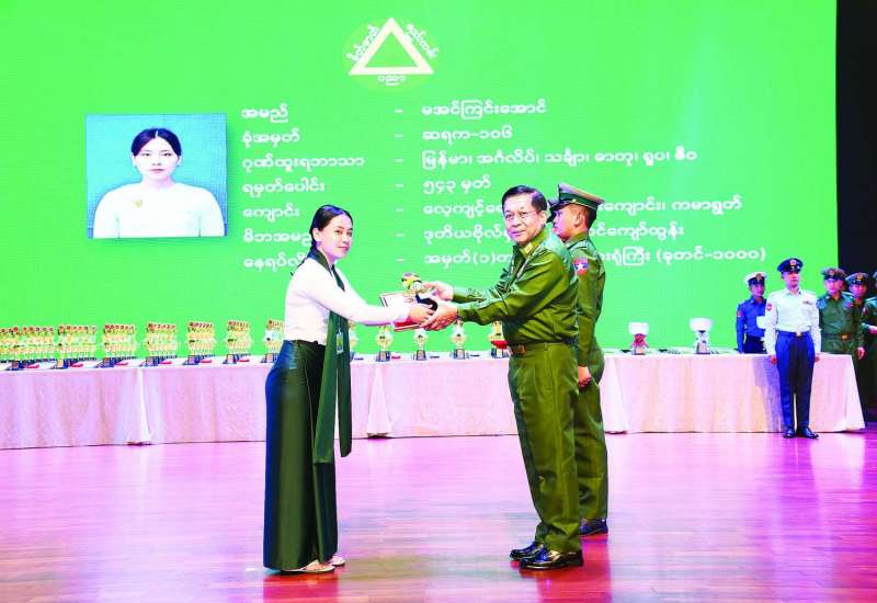၂၀၂၃-၂၀၂၄ ပညာသင်နှစ်၊ တက္ကသိုလ်ဝင်စာမေးပွဲ၌ ထူးချွန်စွာအောင်မြင်ခဲ့သည့် တပ်မတော် (ကြည်း၊ ရေ၊ လေ)မှ စစ်သည်များ၊ စစ်မှုထမ်းဆဲ၊ စစ်မှုထမ်းဟောင်း မိသားစုဝင်သားသမီးများ၊ စစ်သည်အစားခန့်အရပ်သားဝန်ထမ်းများ၏ သားသမီးများနှင့် လူရည်ချွန်ဆုရရှိသော ကျောင်းသား၊ ကျောင်းသူများအား ဂုဏ်ပြုဆုချီးမြှင့်ခြင်း အခမ်းအနားကို ယနေ့မွန်းလွဲပိုင်းတွင် နေပြည်တော်ရှိ ဇေယျာသီရိဗိမာန်၌ကျင်းပပြုလုပ်ရာ နိုင်ငံတော်စီမံအုပ်ချုပ်ရေးကောင်စီဥက္ကဋ္ဌ တပ်မတော်ကာကွယ်ရေးဦးစီးချုပ် ဗိုလ်ချုပ်မှူးကြီးမင်းအောင်လှိုင် တက်ရောက်ဂုဏ်ပြုအမှာစကားပြောကြားပြီး ဂုဏ်ပြုဆုများ ပေးအပ်ချီးမြှင့်သည်။