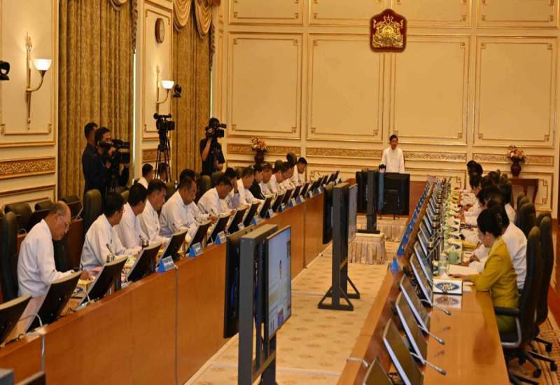 ပြည်ထောင်စုအစိုးရအဖွဲ့အစည်းအဝေး အမှတ်စဉ် (၆/၂၀၂၄) ကို ယနေ့မွန်းလွဲပိုင်းတွင် နေပြည်တော်ရှိ နိုင်ငံတော်စီမံအုပ်ချုပ်ရေးကောင်စီဥက္ကဋ္ဌရုံး အစည်းအဝေးခန်းမ၌ ကျင်းပရာ နိုင်ငံတော်စီမံအုပ်ချုပ်ရေးကောင်စီဥက္ကဋ္ဌ နိုင်ငံတော်ဝန်ကြီးချုပ် ဗိုလ်ချုပ်မှူးကြီး မင်းအောင်လှိုင် တက်ရောက်အမှာစကားပြောကြားသည်