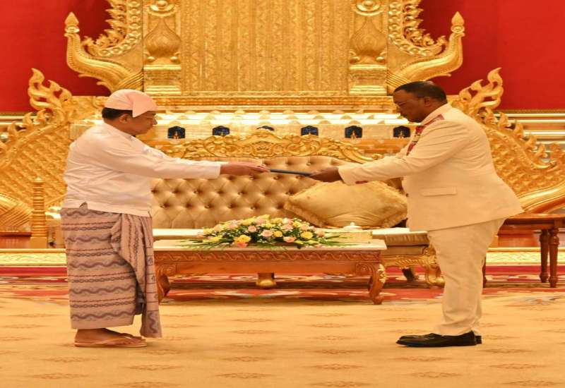 နိုင်ငံတော်စီမံအုပ်ချုပ်ရေးကောင်စီဥက္ကဋ္ဌ နိုင်ငံတော်ဝန်ကြီးချုပ် ဗိုလ်ချုပ်မှူးကြီး မင်းအောင်လှိုင်ထံ မြန်မာနိုင်ငံဆိုင်ရာ အီသီယိုပီးယားဖက်ဒရယ်ဒီမိုကရက်တစ်သမ္မတနိုင်ငံ သံအမတ်ကြီးအဖြစ်ခန့်အပ်ရန် သဘောတူညီပြီးဖြစ်သော သံအမတ်ကြီး H.E. Mr. Daba Debele Hunde သည် ယနေ့နံနက် ၁၀ နာရီတွင် နေပြည်တော်ရှိ နိုင်ငံတော်စီမံအုပ်ချုပ်ရေးကောင်စီဥက္ကဋ္ဌရုံး၊ သံတမန်ဆောင်ဧည့်ခန်းမ၌ ၎င်း၏သံအမတ်ခန့်အပ်လွှာကို ပေးအပ်သည်။