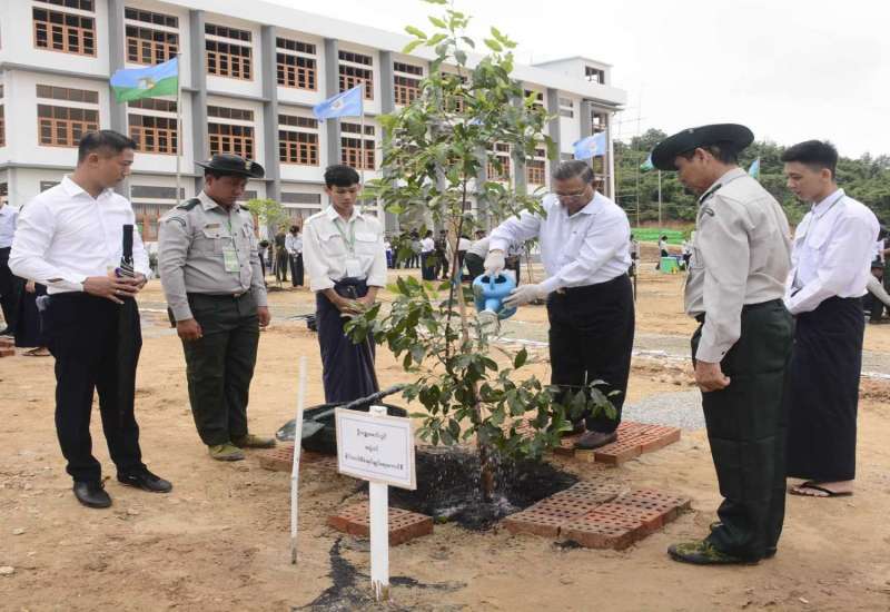 ပြည်ထောင်စုနယ်မြေ၊ နေပြည်တော်၊ ၂၀၂၄ ခုနှစ်၊ ဒုတိယအကြိမ် မိုးရာသီသစ်ပင်စိုက်ပျိုးပွဲအခမ်းအနားကို ယနေ့နံနက်ပိုင်းတွင် ပြည်ထောင်စုနယ်မြေ နေပြည်တော်ရှိ Naypyitaw State Polytechnic University ပရိဝုဏ်အတွင်း၌ ကျင်းပရာ နိုင်ငံတော်စီမံအုပ်ချုပ်ရေးကောင်စီဥက္ကဋ္ဌ နိုင်ငံတော်ဝန်ကြီးချုပ် ဗိုလ်ချုပ်မှူးကြီး မင်းအောင်လှိုင် တက်ရောက်၍ ကံ့ကော်ပျိုးပင်ကို ဦးဆောင်စိုက်ပျိုးပေးသည်။