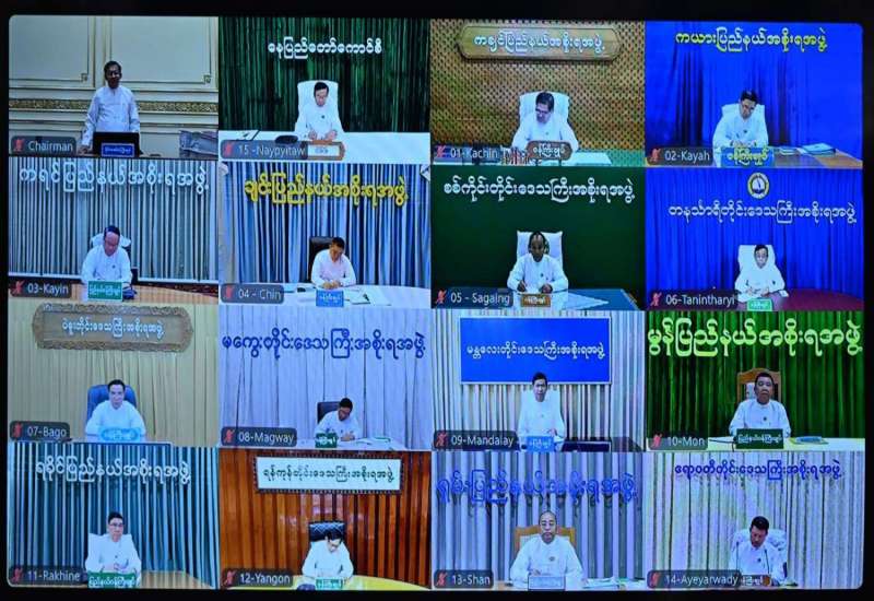 ရန်ကုန်တိုင်းဒေသကြီး တည်ငြိမ်အေးချမ်းရေးနှင့်ဖွံ့ဖြိုးတိုးတက်ရေးအစည်းအဝေးကို ယနေ့ညနေပိုင်းတွင် ရန်ကုန်တိုင်းဒေသကြီး၊ ကုန်းမြင့်သာရှိ အစည်းအဝေးခန်းမ၌ကျင်းပရာ နိုင်ငံတော်စီမံအုပ်ချုပ်ရေးကောင်စီဥက္ကဋ္ဌ နိုင်ငံတော်ဝန်ကြီးချုပ် ဗိုလ်ချုပ်မှူးကြီးမင်းအောင်လှိုင် တက်ရောက်အမှာစကား ပြောကြားသည်။