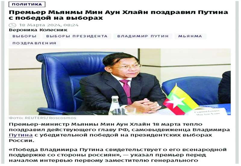 နိုင်ငံတော်စီမံအုပ်ချုပ်ရေးကောင်စီဥက္ကဋ္ဌ နိုင်ငံတော်ဝန်ကြီးချုပ် ဗိုလ်ချုပ်မှူးကြီး မင်းအောင်လှိုင်အား ရန်ကုန်တိုင်းဒေသကြီး ဇေယျာသီရိဗိမာန်သံတမန်ခန်းမ၌ မတ်လ (၁၈) ရက်နေ့ နံနက်ပိုင်းက ရုရှားဖက်ဒရေးရှင်းနိုင်ငံ ITAR-TASS Media မှ ရုရှား - မြန်မာ နှစ်နိုင်ငံ ကဏ္ဍအလိုက် ပူးပေါင်းဆောင်ရွက်မှုအခြေအနေများနှင့်ပတ်သက်၍ တွေ့ဆုံမေးမြန်းမှုများနှင့် ဖြေကြားမှုများကို ဖော်ပြလိုက်ပါသည်-