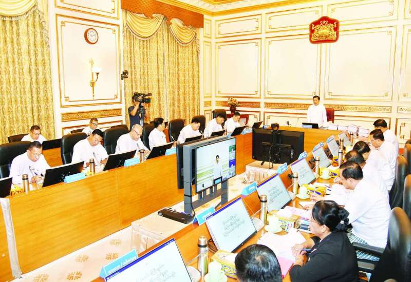 ပြည်ထောင်စုအစိုးရအဖွဲ့ အစည်းအဝေးအမှတ်စဉ်(၃/၂၀၂၄)ကို ယနေ့နံနက်ပိုင်းတွင် နေပြည်တော်ရှိ နိုင်ငံတော်စီမံအုပ်ချုပ်ရေးကောင်စီဥက္ကဋ္ဌရုံး အစည်းအဝေးခန်းမ၌ ကျင်းပရာ နိုင်ငံတော်စီမံအုပ်ချုပ်ရေးကောင်စီဥက္ကဋ္ဌ နိုင်ငံတော်ဝန်ကြီးချုပ် ဗိုလ်ချုပ်မှူးကြီးမင်းအောင်လှိုင် တက်ရောက်အမှာစကား ပြောကြားသည်။
